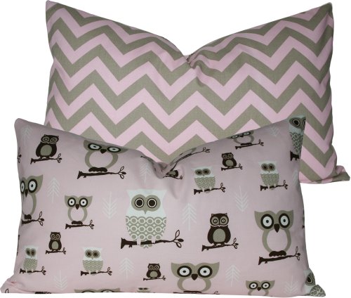 Olive the Owls Collection - Designer 16x26" Lumbar Boutique Throw Pillow Covers - Owls with Zig Zags - Gray, Beige, Brown, White and Pink - 1 Pillow Cover Review