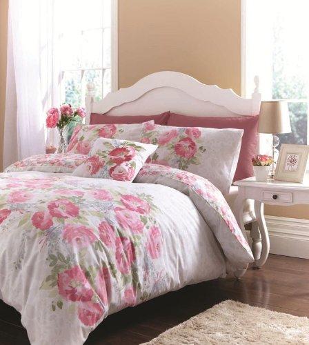 SUPERB COTTON PINK ROSE FLORAL REVERSIBLE SHABBY DUVET CHIC SETGive your bedroom the ultimate in classic style with this Spring/Summer bedding collection. The Stunning Collection combines beautiful modern designs with an eclectic decorative style. Created in a exquisitely soft cotton and polyester fabric this range has a stunning floral print design on one side and a subtle bloom reverse. This bed linen range creates a stylish contemporary look for your bedroom and retains all the the style at a fraction of the cost.Size: Queen, W230cm x L220cm (Duvet Cover), 2 x W50cm x75cm (Pillow Cases) Colour: Pink - Multi Material: 52% Polyester / 48% Cotton Includes: Duvet Cover and Pillow Case Washing Instructions: Machine Washable at 40° C, Can Be Tumble Dried*****PLEASE NOTE THE CUSHION PICTURED IS SOLD SEPARATELY IN OUR AMAZON SHOP***** Read more...